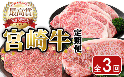 ・1回目:宮崎牛ロースステーキ・600g(150g×4枚) ・2回目:宮崎牛肩焼肉・400g ・3回目:宮崎牛ワンポンドステーキ・454g |