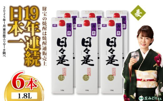 2759 麦焼酎 紙パック6本『日々是(麦)』温泉水仕立ての焼酎 KN021-008