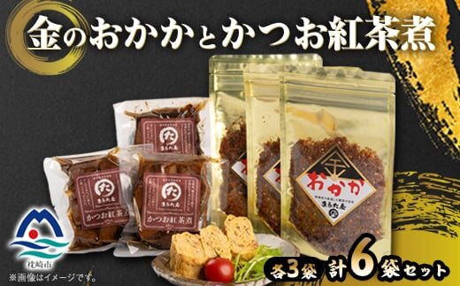 枕崎産の厳選した鰹節と本醸造醤油で手作りした金のおかかと枕崎産の鰹と有機紅茶でやわらかく煮込んだかつおの紅茶煮です。