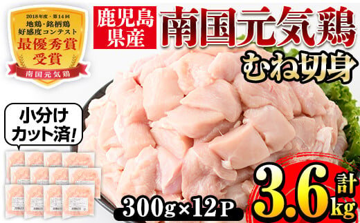 i670 南国元気鶏むね肉(300g×12パック・計3.6kg) 肉 鶏肉 鳥肉 小分け ムネ チキン 国産 から揚げ チキンカツ 冷凍 南国元気鶏【マルイ食品(鹿児島)】