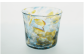 色が付いた粒状のガラスを被せた、涼しげで個性的なグラスです。