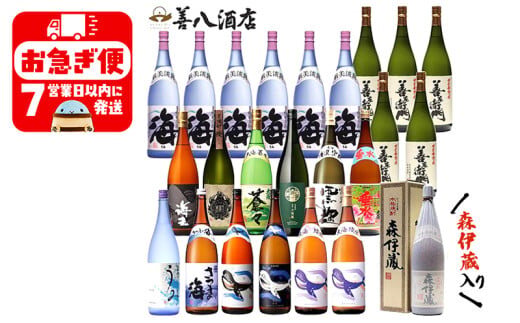 ■森伊蔵酒造 森伊蔵 1800ml 1本(化粧箱付) ■大海酒造 海 1800ml 6本 うみ(常圧蒸留) 1800ml 1本 大海蒼々 1800ml 1本 楔 1800ml 1本 海王 1800ml 1本 大海特選 黒麹 1800ml 1本 茶房 大海庵 1800ml 1本 くじらのボトル白 1800ml 1本 くじらのボトル黒 1800ml 1本 くじらのボトル綾紫白 1800ml 1本 くじらのボトル綾紫黒 1800ml 1本 さつまの海 1800ml 1本 さつま大海垂水ラベル 1800ml 1本 ■さつま無双 善左衛門 1800ml 5本 |