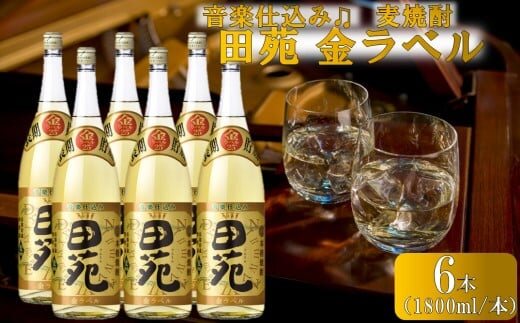 音楽仕込み 麦焼酎 田苑 金ラベル 1800ml×6本 田苑酒造 鹿児島 焼酎 麦 樽貯蔵 長期貯蔵 田苑金ラベル ESR-808