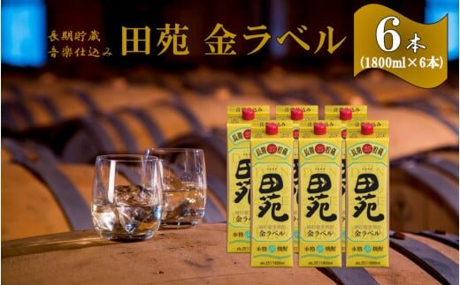 音楽仕込み 麦焼酎 田苑 金ラベル パック 1800ml 6本セット 25度 鹿児島 樽貯蔵 長期貯蔵 麦 焼酎 田苑酒造 ESR-701