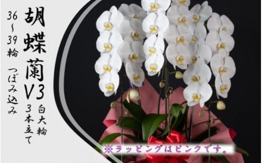 CS-213-3 胡蝶蘭 V3白大輪3本立て 36~39輪 つぼみ込み ラッピング"ピンク"
