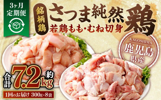 - 【3回定期便】鹿児島県産銘柄鶏・さつま純然鶏 若鶏もも・むね切身(300g×各4パック×3回 合計7.2kg)
