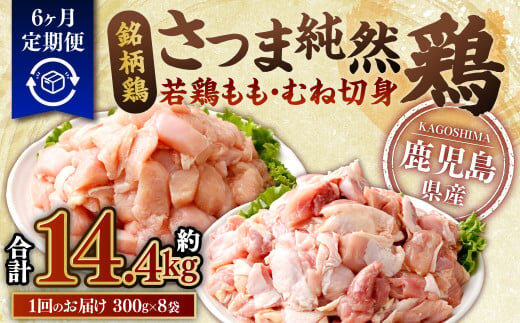 - 【6回定期便】鹿児島県産銘柄鶏・さつま純然鶏 若鶏もも・むね切身(300g×各4パック×6回 合計14.4kg)