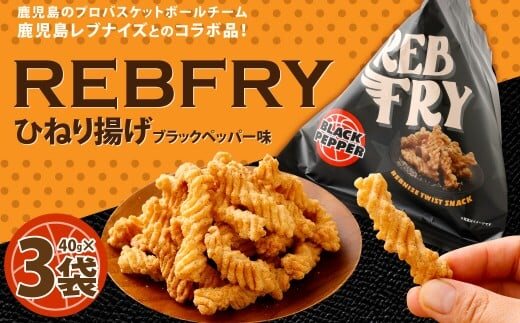RebFRY (ひねり揚げ) 合計120g(40g×3袋) コラボ商品 鹿児島レブナイズ お菓子 黒胡椒 ZS-6123