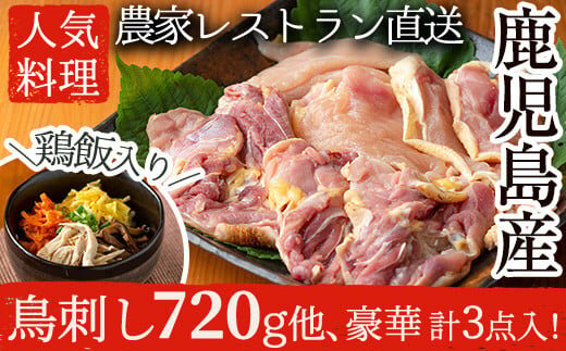 No.400 自家農園の鳥刺しとこだわり鶏料理詰め合わせ(計3点・鹿児島鶏肉の刺身、鶏飯、鶏釜めしの素) 国産 九州産 赤鶏 鶏肉 鳥刺し お肉 冷凍 レトルト 詰め合わせ ごはん おかず【美山たまご王国】