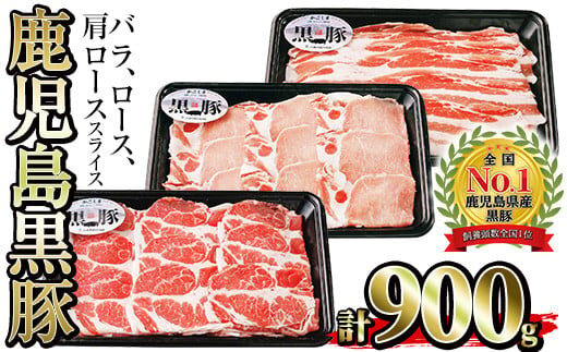 No.473 (C-901)鹿児島黒豚しゃぶしゃぶセット(黒豚バラスライス・黒豚肩ローススライス・黒豚ローススライス各300g・計900g)国産 九州産 黒豚 豚肉 しゃぶしゃぶ すき焼き スライス バラ 肩ロース ロース セット 食べ比べ 冷凍 【さつま日置農協】
