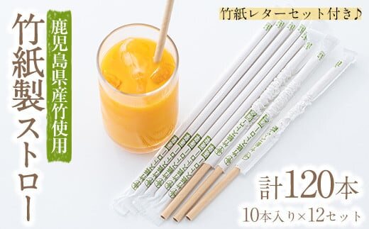 竹紙製ストロー:計120本(10本入り×12セット) 竹紙レターセット(薩摩の偉人たち):1枚 |