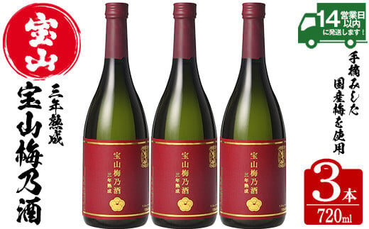 No.916 宝山梅乃酒 三年熟成(720ml×3本) 宝山 梅酒 酒 果実酒 アルコール 家飲み 宅飲み 梅 国産 熟成 鹿児島 薩摩 ギフト 贈答 常温 常温保存【西酒造】【915】