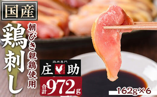 No.943-01 国産!両面炙り鳥刺し(合計972g・162g×6) 鳥刺し 鶏さし とりさし 鶏肉 とり肉 モモ ハネ おかず 惣菜 冷凍 簡単 おつまみ 真空パック【庄助】