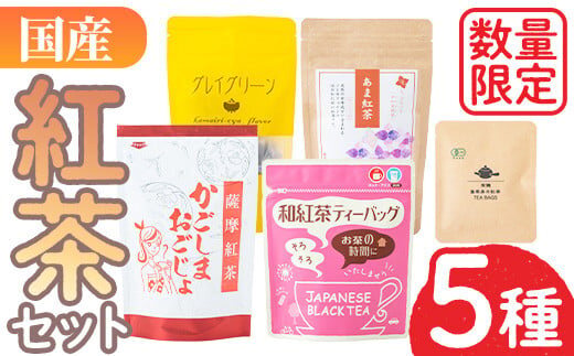 No.1080 <数量限定>ふるさと紅茶セット!薩摩紅茶・有機紅茶など5種飲み比べ! 飲料 お茶 茶 ティー ティーパック 詰合せ 飲み比べ 【日置市観光協会】