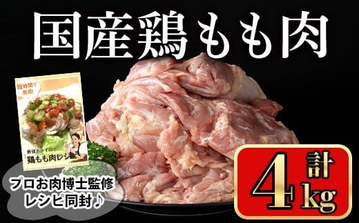 国産鶏もも肉(計4kg) 鶏肉 もも 冷凍【小迫ストアー】A717