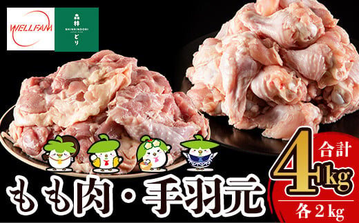 A0-270 森林どり もも肉・手羽元セット(各2kg・合計4kg)【ウェルファムフーズ】霧島市 国産 鶏 鳥肉