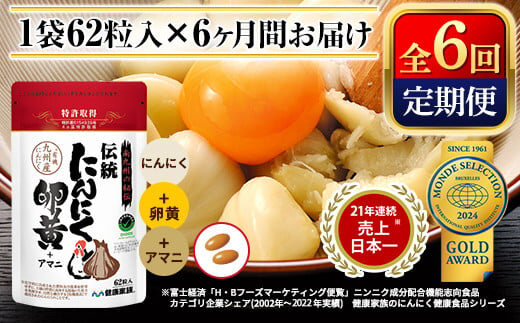 F0-007 《定期便・全6回》伝統にんにく卵黄+アマニ・スタンドタイプ(1袋62粒入)(総合計6袋)【健康家族】霧島市 サプリメント サプリ 健康食品 栄養補助食品