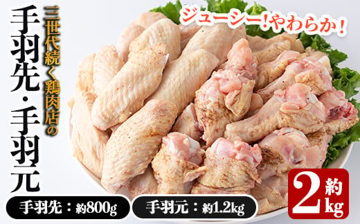 A0-353 三世代続く鶏肉店の人気「手羽先・手羽元セット」(計2kg)【海江田鶏肉店】 霧島市 国産 肉 鳥肉 鶏肉 チキン セット 小分け 真空パック 冷凍 料理