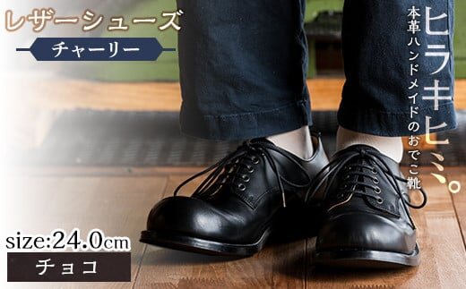 P3-003-C-240 本革ハンドメイドのレザーシューズ「おでこ靴(チャーリー)」(チョコ・24.0cm)【ヒラキヒミ。】 霧島市 革靴 メンズ レディース 靴
