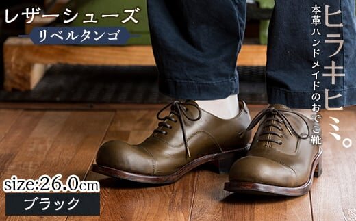 P3-004-A-260 本革ハンドメイドのレザーシューズ「おでこ靴(リベルタンゴ)」(ブラック・26.0cm)【ヒラキヒミ。】 霧島市 革靴 メンズ レディース 靴