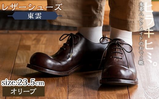 P3-006-B-235 本革ハンドメイドのレザーシューズ「おでこ靴(東雲)」(オリーブ・23.5cm)【ヒラキヒミ。】 霧島市 革靴 メンズ レディース 靴