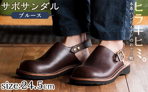 P1-033-E-245 本革ハンドメイドのおでこ靴「Blues・サボサンダル」(ダークブラウン・24.5cm)【ヒラキヒミ。】 霧島市 革靴 メンズ レディース カジュアル サンダル