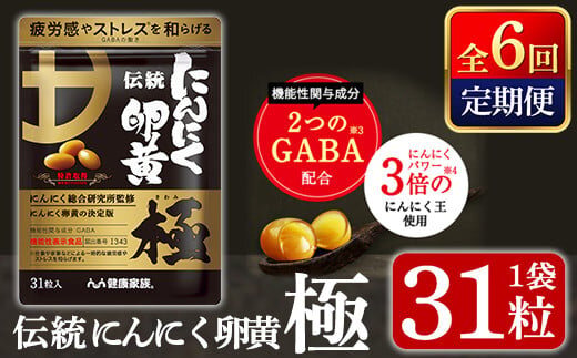 K-124 《定期便・全6回》伝統にんにく卵黄・極(1袋31粒入:総合計6袋)【健康家族】霧島市 健康食品 サプリ 栄養補助食品 GABA DHA 機能性表示食品