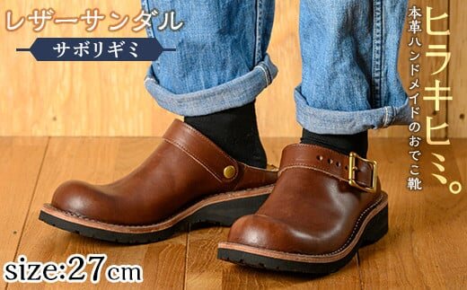 P1-039-E-270 本革ハンドメイドのレザーサンダル「おでこ靴(サボリギミ)」(ダークブラウン・27.0cm)【ヒラキヒミ。】霧島市 革靴 メンズ レディース 靴