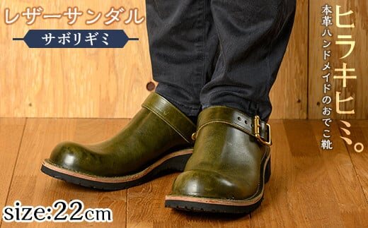 P1-039-B-220 本革ハンドメイドのレザーサンダル「おでこ靴(サボリギミ)」(オリーブ・22.0cm)【ヒラキヒミ。】霧島市 革靴 メンズ レディース 靴