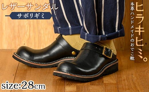 P1-039-A-280 本革ハンドメイドのレザーサンダル「おでこ靴(サボリギミ)」(ブラック・28.0cm)【ヒラキヒミ。】霧島市 革靴 メンズ レディース 靴