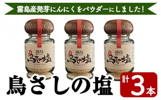 K-144 鳥さしの塩(合計3本)【SUISM】霧島市 食塩 塩 調味料 食卓塩 天日塩 ニンニク にんにく ガーリック 発芽ニンニク スプラウトニンニク 鳥刺し 鶏刺し とりさし