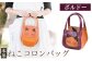 4面のハンドバッグのうち前面にねこのお顔モチーフのポケット、背面にねこの尻尾モチーフの革を縫い付けてあります。