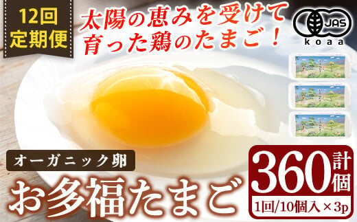 K-173-B <12回定期便>オーガニック卵「お多福たまご」(計360個・10個入×3パック 12回)【お多福たまご】有機JAS オーガニック 放し飼い自然卵 霧島市 国産 九州産 鹿児島県産 たまご 卵 鶏卵 朝食 定期便