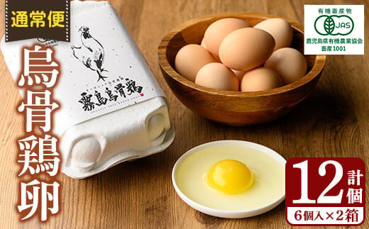 K-331-A <通常便>オーガニック烏骨鶏卵「霧島烏骨鶏」(計12個・6個入×2箱)【お多福たまご】有機JAS 放し飼い自然卵 霧島市 国産 九州産 鹿児島県産 たまご 卵 鶏卵 烏骨鶏 うこっけい 朝食 通常便