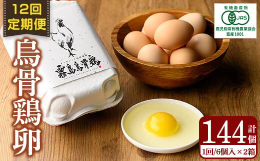 K-331-B <12回定期便>オーガニック烏骨鶏卵「霧島烏骨鶏」(計144個・6個入×2箱 12回)【お多福たまご】有機JAS 放し飼い自然卵 霧島市 国産 九州産 鹿児島県産 たまご 卵 鶏卵 烏骨鶏 うこっけい 朝食 定期便