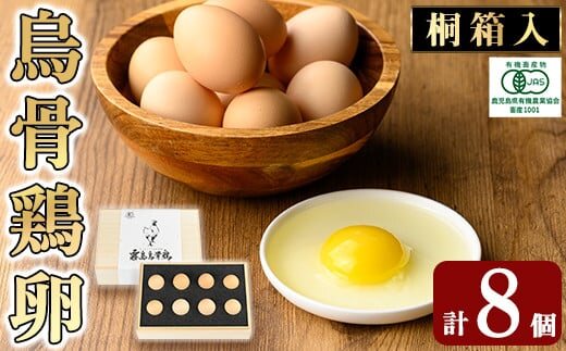 K-332 《桐箱入》オーガニック烏骨鶏卵「霧島烏骨鶏」(8個入)【お多福たまご】有機JAS 放し飼い自然卵 霧島市 国産 九州産 鹿児島県産 たまご 卵 鶏卵 烏骨鶏 うこっけい 朝食 ギフト 贈答 プレゼント