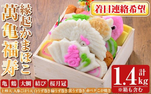 K-538-C <着日連絡希望>縁起かまぼこ「萬亀福寿」幸運を運ぶ至高の逸品 計1.4kg(箱も含む) 【植山かまぼこ屋】 鹿児島 霧島市 さつま揚げ さつまあげ 薩摩揚げ つけあげ かまぼこ 練り物 縁起物 惣菜