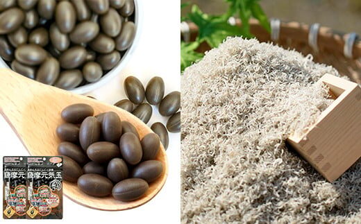 網元ちりめん 200g(50g×4袋) 黒酢もろみにんにく卵黄 2ヶ月分 124粒(62粒×2袋) |