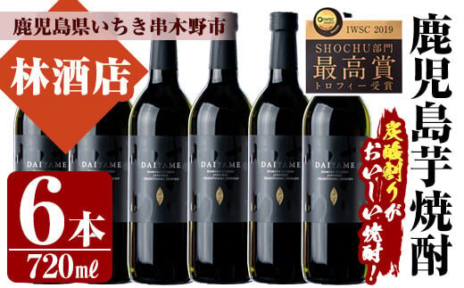 芋焼酎 「だいやめ」720ml×6本 四合瓶 6本セット 25度 鹿児島 本格芋焼酎 人気 だいやめハイボール 焼酎ハイボール 焼酎 フルーティー ライチ ダイヤメ DAIYAME 濵田酒造 【B-297H】