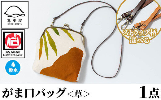 がま口バッグ<草>1点 伝統工芸 本染め 染物 染め物 バッグ ポーチ かばん カバン 鞄 ファッション 贈り物 ギフト お祝い プレゼント【D-615H】