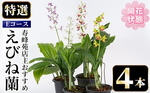 【個数限定】開花済 のものをお届け! 寿峰苑特選えびね蘭 店主おすすめ開花済Eコース(4本) 鹿児島 冠岳 で育った 蘭〈お届け時期:3月下旬から4月中旬まで〉【E-148H】