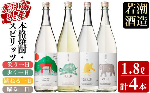 <入金確認後、2週間以内に発送!>若潮酒造 本格焼酎・スピリッツ<一日シリーズ>飲み比べセット 1800ml×4本!歩く一日 跳ねる一日 躍る一日 笑う一日 芋焼酎 鹿児島むぎ焼酎 いも焼酎 ハイボールにも!樽熟成焼酎 本格焼酎 一升瓶 d7-003-2w