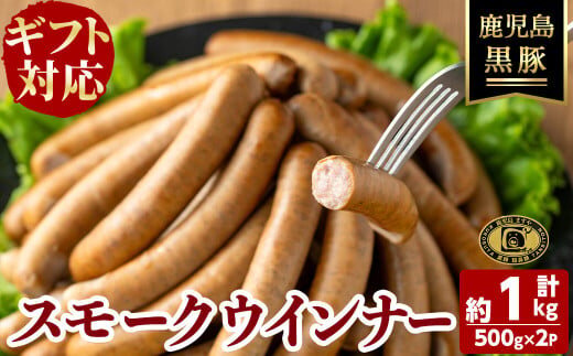 【お歳暮】【無添加】【ギフト対応】「福別府農場」鹿児島黒豚無添加スモークウインナー(約500g×2P) ウインナー ソーセージ 添加物不使用 無添加 黒豚 国産 豚肉 贈り物 プレゼント ギフト 冷凍 おつまみ おかず b0-184-os