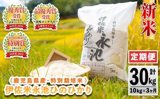 isa541 【定期便】令和7年産 特別栽培米 伊佐米永池ひのひかり(計30kg・10kg×3ヶ月) 伊佐市 永池 お米 米 白米 精米 伊佐米 食味コンテスト 最優秀賞受賞 ヒノヒカリ 【エコファーム永池】