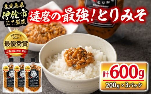 isa635 達磨の最強!とりみそセット(計600g・200g×3個) 国内産 種鶏 若鶏 味噌 みそ 鶏みそ 鶏味噌 とりみそ 調味料 金山ネギ ご飯のお供 【シャッツフードカンパニー】