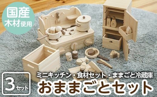 a541 姶良市産木材使用!IKONIHおままごと3点セット!【IKONIH FUKUOKA】 姶良市 知育 玩具 遊び 木遊び おもちゃ キッチン 冷蔵庫 食材 子ども 誕生日 木 木材