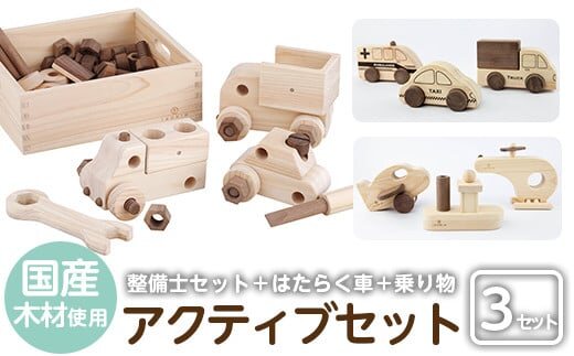a544 姶良市産木材使用!IKONIHアクティブセット(整備士セット・はたらく車・乗り物シリーズ)【IKONIH FUKUOKA】 姶良市 知育 玩具 遊び 木遊び おもちゃ 整備士セット 救急車 トラック 船 ヘリコプター ミニカー 子ども 誕生日 木 木材