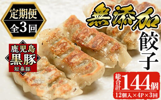 a880 《定期便全3回》鹿児島黒豚「短鼻豚」無添加餃子セット計144個(48個×3回)【鹿児島ますや】姶良市 ギョーザ 餃子 無添加 惣菜 おかず おつまみ 冷凍 黒豚 国産野菜 ぎょうざ
