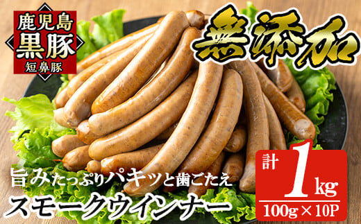 a622-B 鹿児島黒豚「短鼻豚」無添加スモークウィンナー1kg(100g×10P)【鹿児島ますや】姶良市 国産 ウィンナー 無添加 ウインナー ソーセージ 冷凍 黒豚