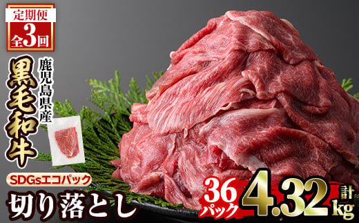 a844-F 【3回定期便】黒毛和牛切り落とし(12P×3回計4.32kg)【水迫畜産】国産 肉 牛肉 黒毛和牛 切り落とし セット 小分け トレー無し SDGs